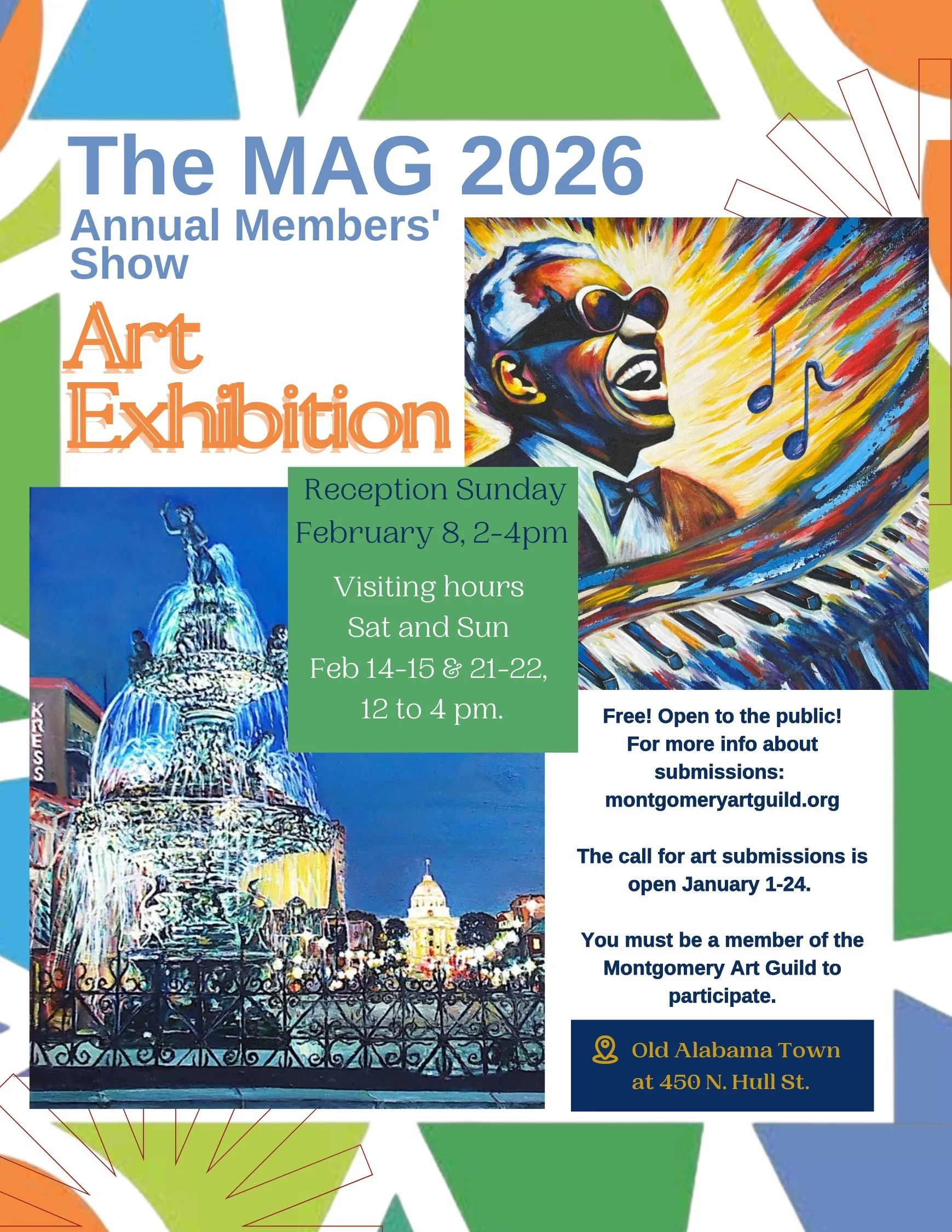 CAlling all MOntgomery Art Guild Member artists! display your artwork at the upcoming members’ exhibition, February 8-22. opening reception for the This event is Sunday, February 8, from 2-4 pm. Follow this link for more information: